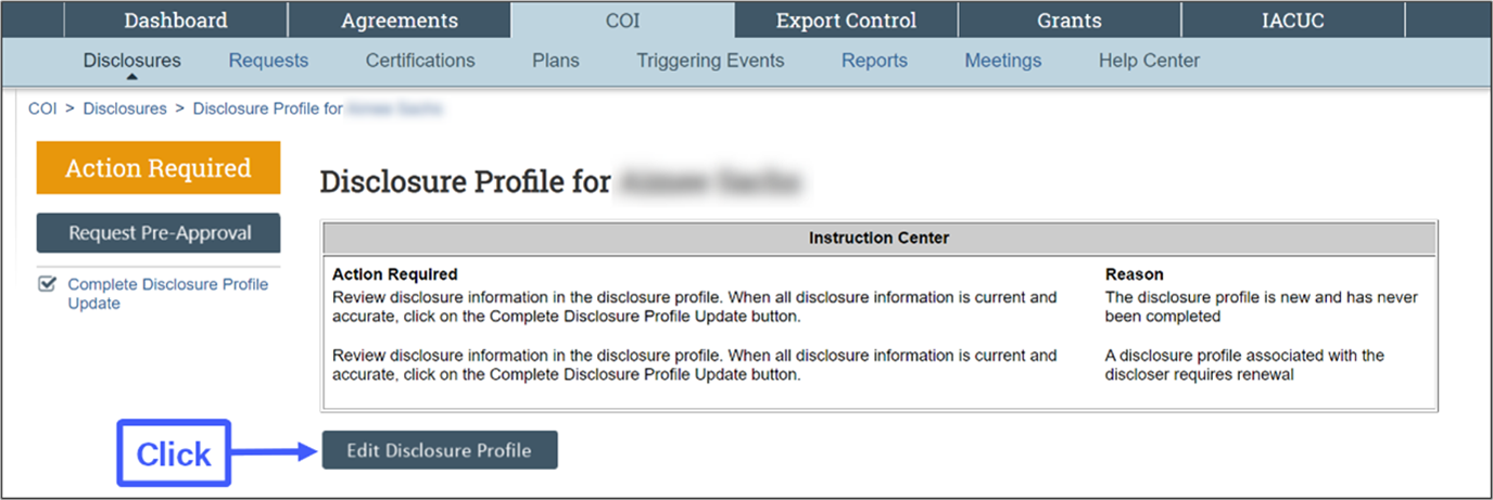 2. Click on “Edit Disclosure Profile” to open the page.