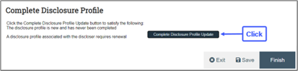 • Click “Complete Disclosure Profile Update”  Note: The “Finish” button will not submit your profile and will leave it incomplete.